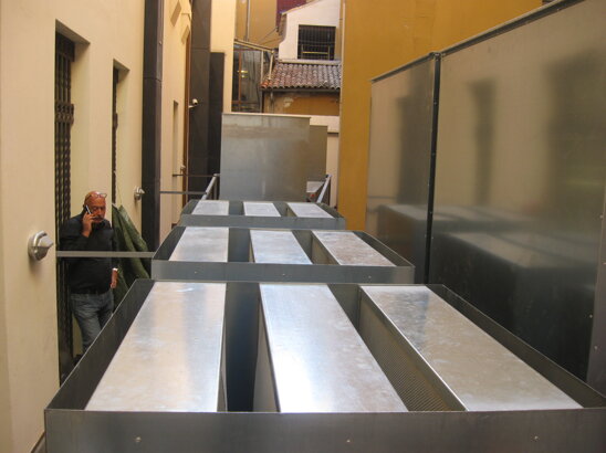 Realizziamo su ordinazione Silenziatori in linea a setti fonoassorbenti, Pareti e Cabine afoniche per macchinari e moto condensanti, etc.